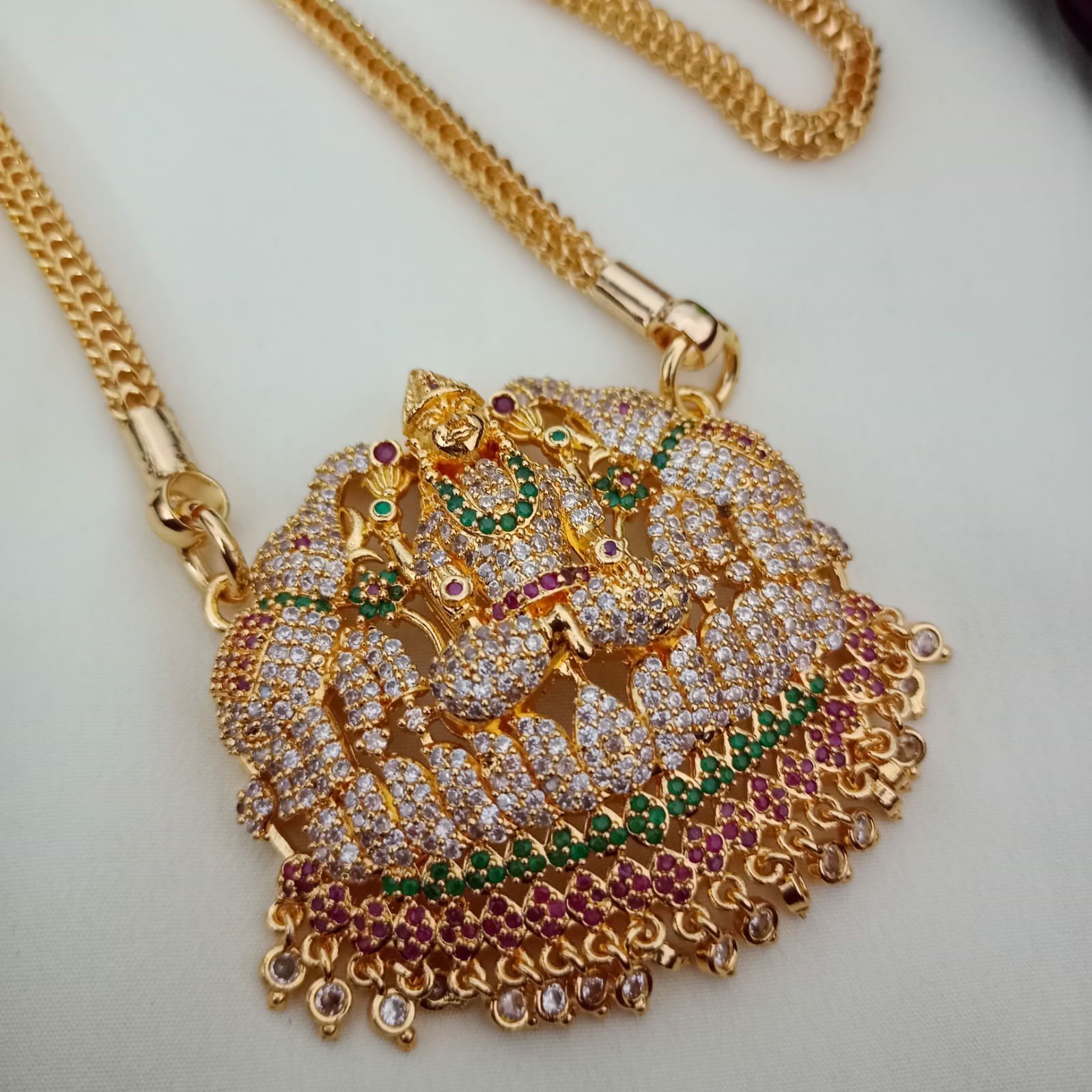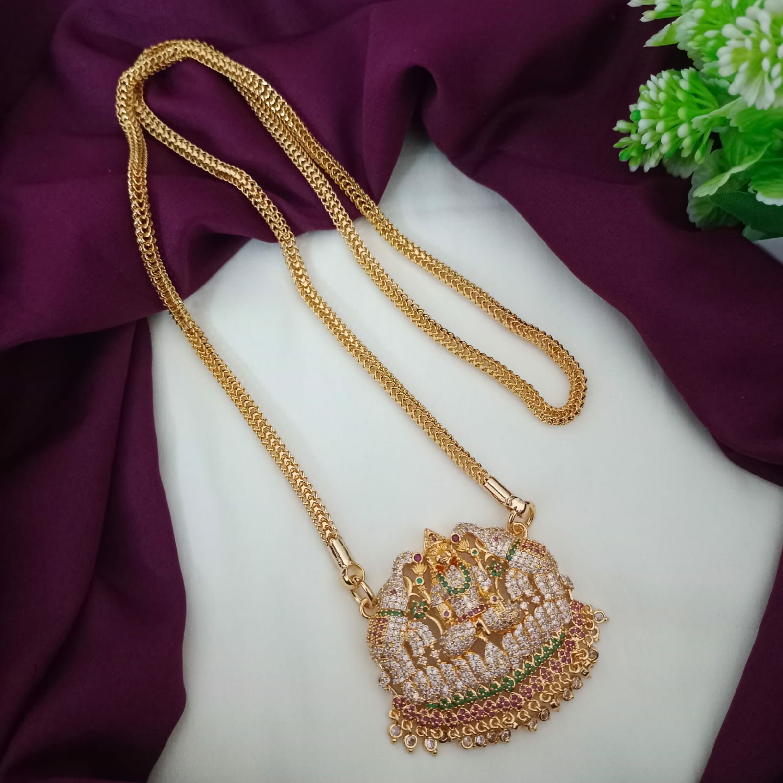 கல் பதித்த கஜலக்ஷ்மி டாலர் | 30 இன்ச் நீளம் தடித்த செயின்
